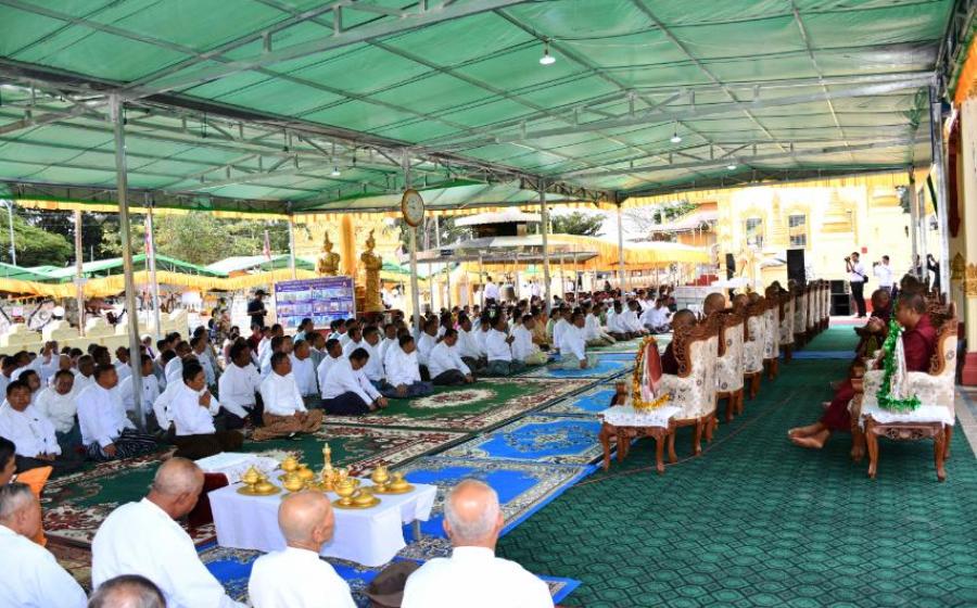 ထို့နောက် ပြည်နယ်သံဃနာယကအဖွဲ့ ဥက္ကဋ္ဌ၊ ကျောင်းထိုင်ဘုန်းကြီးသင်တန်းကျောင်း ဆရာတော် အရှင်သူမြတ်ထံမှ အနုမောဒနာတရား နာယူကြည်ညို၍ လှူဒါန်းမှုအစုစုတို့အတွက် ရေစက်သွန်းချ အမျှ ပေးဝေခဲ့ပြီး “ ဗုဒ္ဓသာသနံ စိရံ တိဋ္ဌတု” သုံးကြိမ်ရွတ်ဆို  ဆုတောင်းခဲ့ကာ အခမ်းအနားကို ရုပ်သိမ်းခဲ့ကြသည်။ ထို့နောက် ပြည်နယ် ဝန်ကြီးချုပ်နှင့် တာဝန်ရှိသူများက ဆရာတော်၊ သံဃာတော် အရှင်သူမြတ်များအား နေ့ဆွမ်းဆက်ကပ် လှူဒါန်းခဲ့ကြပြီး ဧည့်ပရိသတ် များအား နေ့လယ်စာဖြင့် တည်ခင်းဧည့်ခံခဲ့သည်။