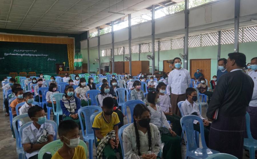 ကယားပြည်နယ်ဝန်ကြီးချုပ် ဦးဇော်မျိုးတင် လွိုင်ကော်မြို့ အမှတ်(၁)အခြေခံပညာအထက်တန်းကျောင်း၌ ကျောင်းသား ၊ ကျောင်းသူများ အေးချမ်းပျော်ရွင်စွာ ပညာသင်ယူနေမှုနှင့် ကိုဗစ်-၁၉ ရောဂါ ကာကွယ်ဆေးထိုးနှံနေမှုအား ကြည့်ရှုအားပေး