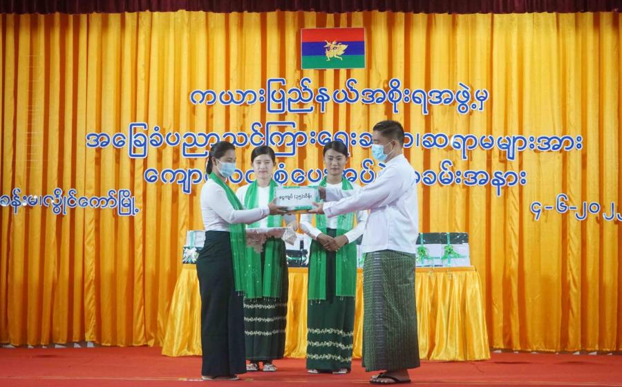 ကယားပြည်နယ်အစိုးရအဖွဲ့မှ ပြည်နယ်အတွင်းရှိအခြေခံပညာသင်ကြားရေး ဆရာ ၊ ဆရာမများအား ကျောင်းဝတ်စုံနှင့် ထောက်ပံ့ငွေများပေးအပ်ပွဲသို့ ပြည်နယ်ဝန်ကြီးချုပ် တက်ရောက်