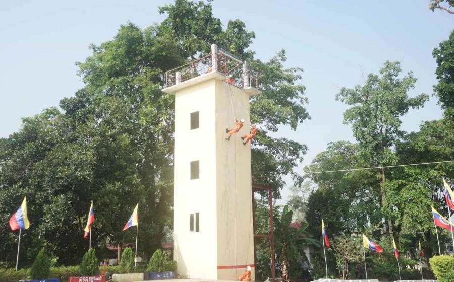 ဆက်လက်၍ ပြည်နယ်ဝန်ကြီးချုပ်နှင့် တာဝန်ရှိသူများက မီးသတ်တပ်ဖွဲ့ဝင်များ၏ အထပ်မြင့်များတွင် ရှာဖွေကယ်ဆယ်ရေးလုပ်ငန်း ဆောင်ရွက်ရာ၌ အသုံးပြုသည့် ကြိုးဆင်း စနစ်များဖြစ်သည့် ကြိုးတစ်ချောင်းဖြင့် အထပ်မြင့်အားကြိုးတက်နည်း ၊ အဆောက်အဦ တစ်ခုနှင့်တစ်ခုအား ကြိုးကူးနည်း ၊ ရိုးရိုးကြိုးဆင်းနည်း ၊ ဇောက်ထိုးဆင်းကူးပြောင်းနည်း ၊ အပြေးဆင်းနည်း ၊ လူနာဖြင့်ကယ်ဆယ်နည်း ၊ အလွတ်ခုန်ကြိုးဆင်းနည်း ၊ ဆီဘောက်ဆာ မီးလောင်မှု ၊ Gas မီးလောင်မှုများအား မီးငြှိမ်းသတ်နည်း ၊ ရေကာလာစုံဖြင့် အလှပြသနည်း များနှင့် “ရဲဝံ့စွန့်စား မီးသတ်သမား” ဗီနိုင်းဆိုင်းဘုတ်အား ကြိုးဖြင့်ဆင်း၍ သရုပ်ပြနေမှုများကို ကြည့်ရှုအားပေးခဲ့ကြပြီး ပြည်နယ်ဝန်ကြီးချုပ်က မီးသတ်တပ်ဖွဲ့ဝင်များအား ဂုဏ်ပြုချီးမြှင့် ငွေများပေးအပ်ခဲ့ရာ ပြည်နယ်မီးသတ် ဦးစီးမှူး ဦးမြကြိုင်က လက်ခံရယူခဲ့သည်။