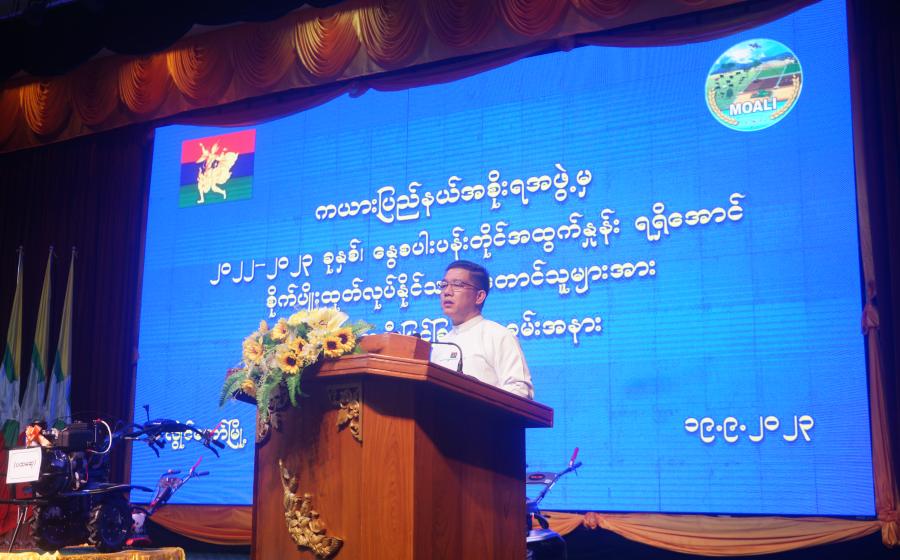 နိုင်ငံတော်စီမံအုပ်ချုပ်ရေးကောင်စီအဖွဲ့ဝင် ပိုးရယ်အောင်သိန်း ၊ ၂၀၂၂-၂၀၂၃ခုနှစ် ကယားပြည်နယ်အတွင်း နွေစပါးပန်းတိုင် အထွက်နှုန်း ကျော်လွန်သည်အထိ စိုက်ပျိုးနိုင်ခဲ့သည့် တောင်သူများအား ဆုချီးမြှင့်ခြင်း အခမ်းအနားသို့ တက်ရောက်