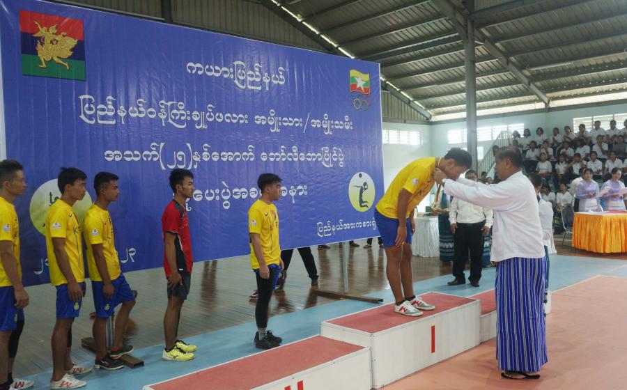 ယင်းနောက် ဆုပေးပွဲအခမ်းအနားကို ဆက်လက်ကျင်းပရာ နိုင်ငံတော်စီမံအုပ်ချုပ်ရေး ကောင်စီအဖွဲ့ဝင် ၊ ပြည်နယ်ဝန်ကြီးချုပ်နှင့် တာဝန်ရှိသူများက ပွဲစဉ်တစ်လျှောက် အကောင်းဆုံး အမျိုးသား ၊ အမျိုးသမီး အားကစားသမားများအားလည်းကောင်း ၊ အမျိုးသမီး ဘောလီဘော ပြိုင်ပွဲတွင် ပူးတွဲတတိယဆုရရှိသည့် ဒီးမော့ဆိုမြိုနယ်အသင်းနှင့် ဖရူဆိုမြို့နယ်အသင်း ၊  အမျိုးသားဘောလီဘောပြိုင်ပွဲတွင် ပူးတွဲတတိယဆုရရှိသည့် လွိုင်ကော်မြိုနယ်အသင်းနှင့် ဖရူဆိုမြို့နယ်အသင်း ၊ အမျိုးသမီးဘောလီဘောပြိုင်ပွဲတွင် ဒုတိယဆုရရှိသည့် လွိုင်ကော်မြို့နယ် အသင်း ၊ အမျိုးသားဘောလီဘောပြိုင်ပွဲတွင် ဒုတိယဆုရရှိသည့် ဘောလခဲမြို့နယ်အသင်း ၊ အမျိုးသမီးဘောလီဘောပြိုင်ပွဲတွင် ပထမဆုရရှိသည့် ရှားတောမြို့နယ်အသင်းနှင့် အမျိုးသား ဘောလီဘောပြိုင်ပွဲတွင် ပထမဆုရရှိသည့် ဒီးမော့ဆိုမြို့နယ်အသင်းတို့အား ဆုတံဆိပ် ၊ တံခွန်စိုက်ဆုဖလားနှင့် ဂုဏ်ပြုချီးမြှင့်ငွေများ ပေးအပ်ခဲ့ကြပြီး ဆုရအားကစားသမားများနှင့် မှတ်တမ်းတင်ဓါတ်ပုံ ရိုက်ကူးခဲ့ကြကြောင်းသိရသည်။