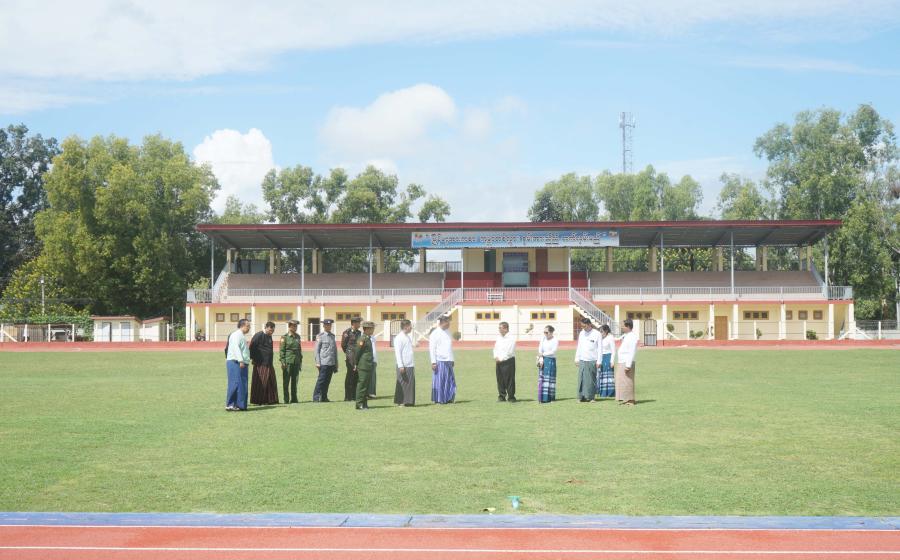 ဆက်လက်ပြီး နိုင်ငံတော်စီမံအုပ်ချုပ်ရေး ကောင်စီအဖွဲ့ဝင် ၊ ပြည်နယ်ဝန်ကြီးချုပ်နှင့် တာဝန်ရှိသူများသည် အားကစားကွင်း ၊ အားကစားရုံအတွင်းရှိ အားကစားပွဲကြည့်စင်များနှင့် မီတာ(၄၀၀)ပြေးလမ်း တို့အားလှည့်လည်ကြည့်ရှုခဲ့ကြပြီး လိုအပ်သည်များကို ပေါင်းစပ်ညှိနှိုင်း ဆောင်ရွက်ပေးခဲ့သည်။