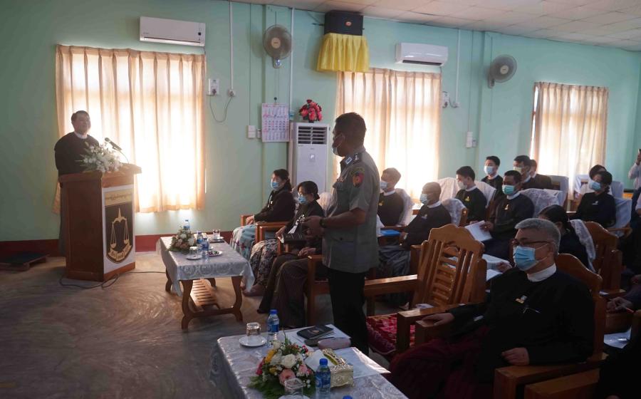 ၂၀၂၂ ခုနှစ်၊ သြဂုတ်လ( ၁ )ရက်နေ့တွင် စတင်အကောင်အထည်ဖော်မည့် တရားမမှုများတွင် တရားရုံးက ဦးဆောင်သည့် စေ့စပ်ဖြေရှင်းရေးနှင့်စပ်လျဉ်း၍ မိတ်ဆက်ရှင်းလင်းခြင်း အခမ်းအနားကို ယနေ့နံနက် ၉ နာရီအချိန်က လွိုင်ကော်မြို့၊ ကယားပြည်နယ် တရားလွှတ်တော်ရှိ ရွှေကိန္နရီခန်းမ၌ ကျင်းပပြုလုပ်ခဲ့သည်။