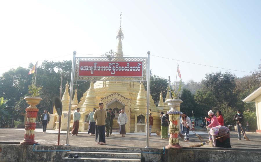 ကယားပြည်နယ်ဝန်ကြီးချုပ် လွိုင်ကော်မြို့ပေါ်ရှိ ဘုရားစေတီပုထိုးများနှင့် ဘုန်းတော်ကြီးကျောင်းများတွင် စုပေါင်းသန့်ရှင်းရေး ကုသိုလ်ပြုဆောင်ရွက်နေမှုများအား ကြည့်ရှုစစ်ဆေး